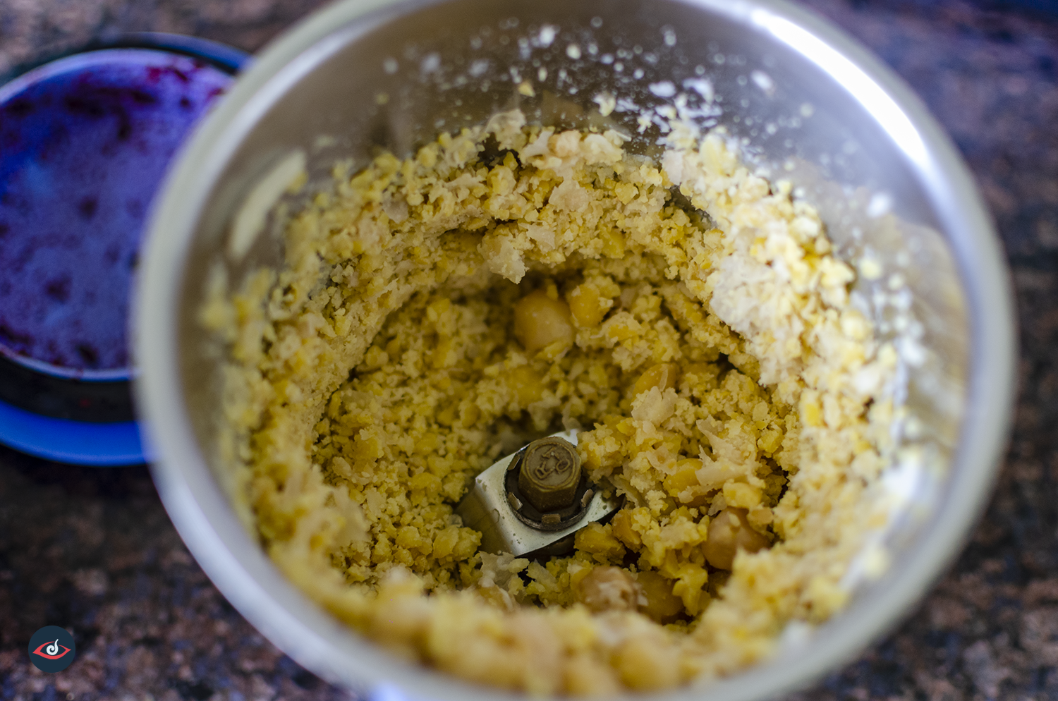 Cool down and grind in a mixer until it’s shredded. We don’t need to puree it completely. Reserve separately.