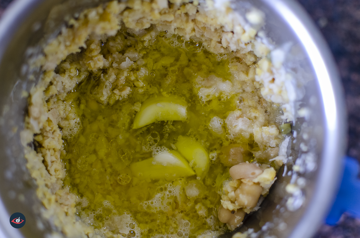 Add the second quantity of garlic and salt, along with olive oil, water and lime juice in the jar and mix for a minute or so.
